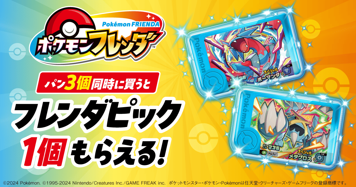 パン3個の購入で、ポケモンフレンダで使うことができるスペシャルフレンダピック1個がもらえます。12/16(火)10:00からはじまった期間限定のキャンペーンなので紹介していきます。