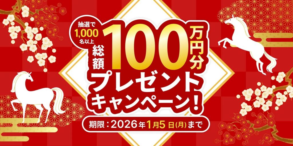 - 抽選で1,000名以上に、総額100万円分プレゼントキャンペーン(2026年1月5日まで)