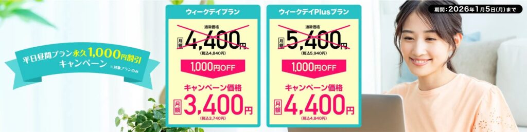月額5,940円(税込)→ 月額4,840円(税込)1/5まで - ウィークデイプラン