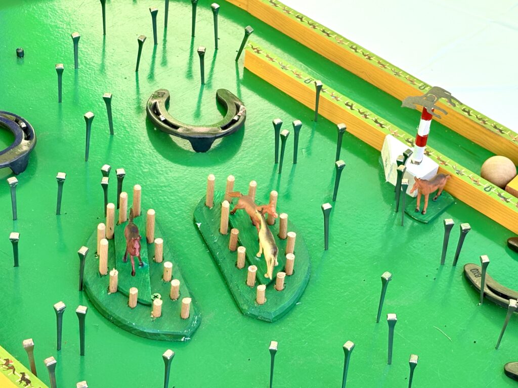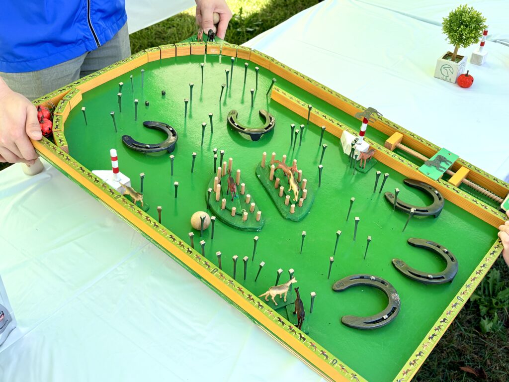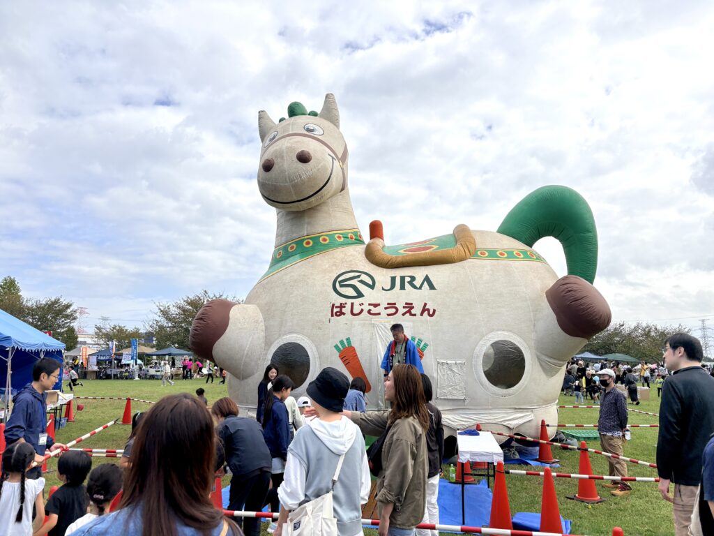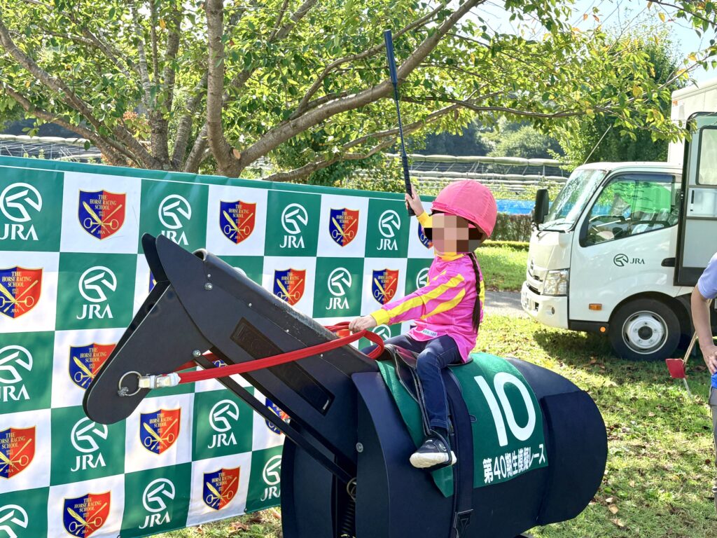 手作りのかわいいスマートボール(無料で遊べて豪華景品あり)、騎手になりきって模擬競走馬にまたがり訓練、撮影ができます。