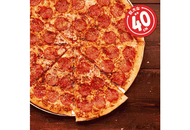すべてのピザラバーへ捧げる。シンプル、ビッグ、王道。これがキングオブピザ。アメリカのピザ文化発祥地ニューヨークで今も愛され続けるスタイルを楽しもう。直径約40cmのピザ生地に、トマトソースとペパロニ、チーズのみ。