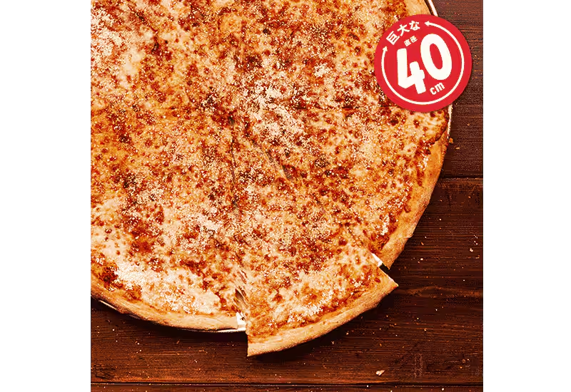 すべてのピザラバーへ捧げる。シンプル、ビッグ、王道。これがキングオブピザ。アメリカのピザ文化発祥地ニューヨークで今も愛され続けるスタイルを楽しもう。直径約40cmのピザ生地に、トマトソースとたーっぷりのチーズのみ。