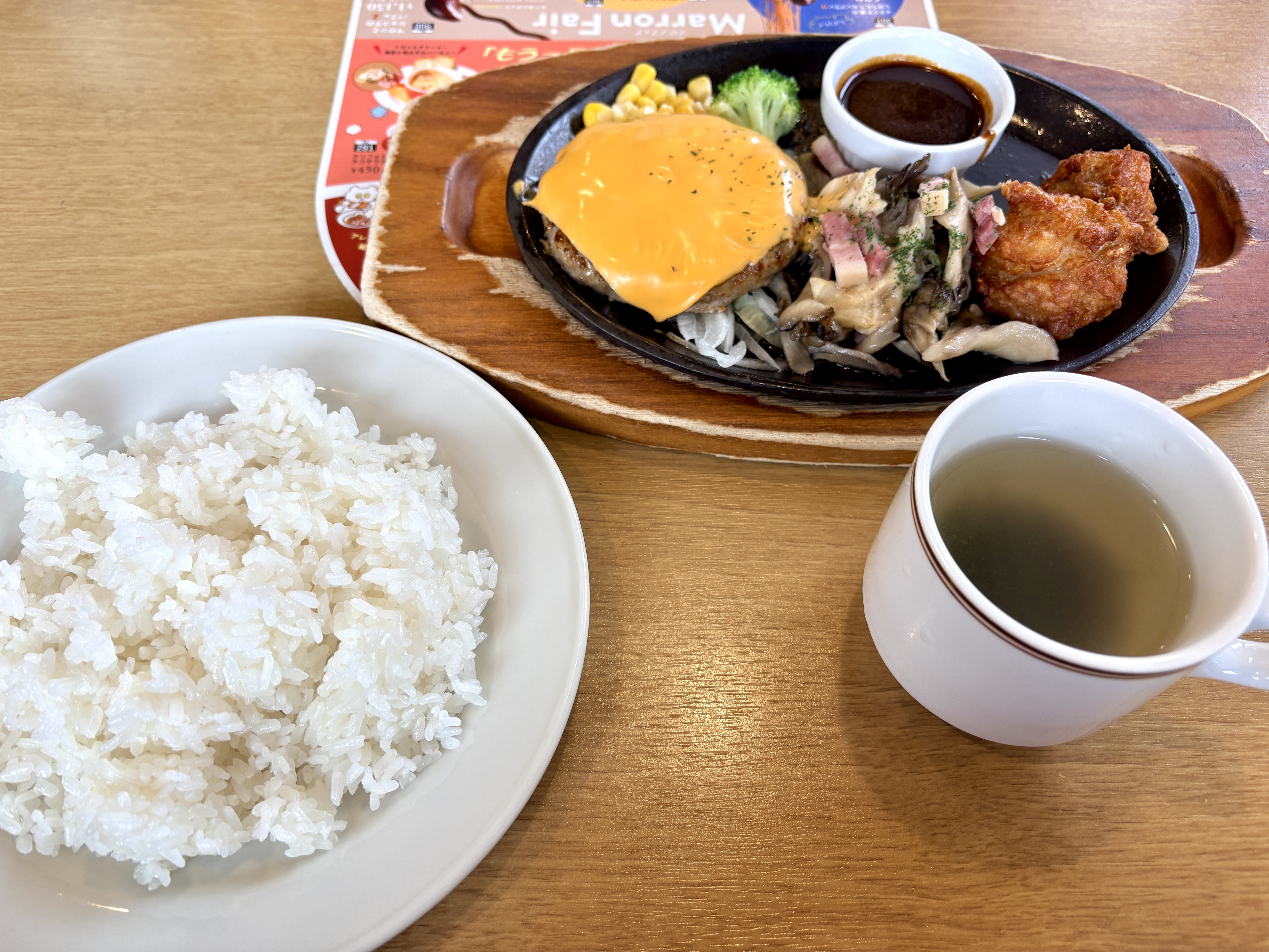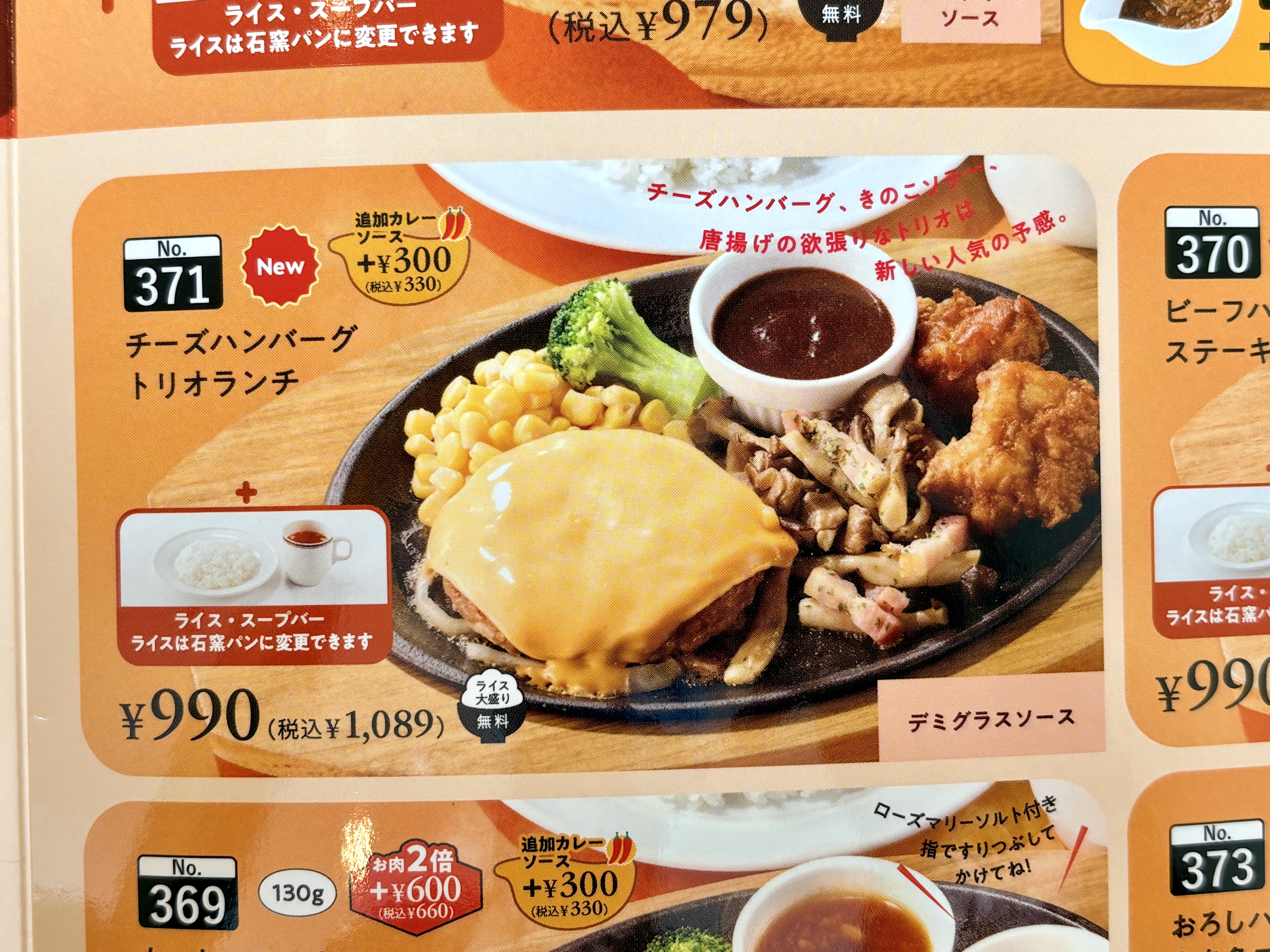 - 「チーズハンバーグトリオランチ」は、ボリューム満点でお得!