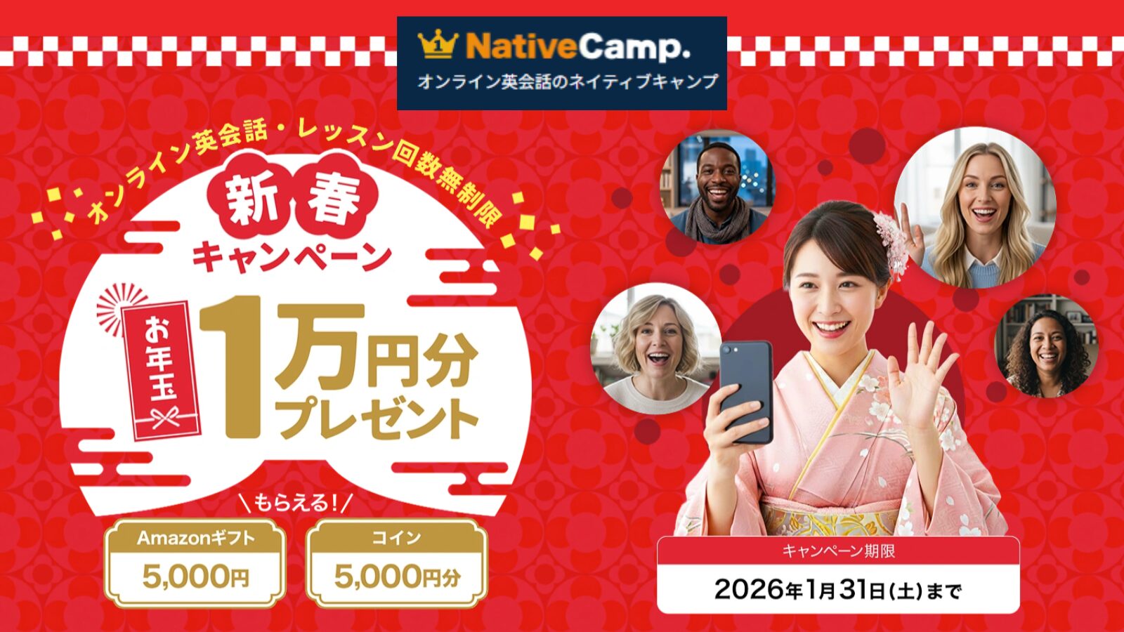 以上、ネイティブキャンプ【1万円分のお年玉プレゼント】1月限定!新春キャンペーンでお得にオンライン英会話をはじめよう!、という記事でした。