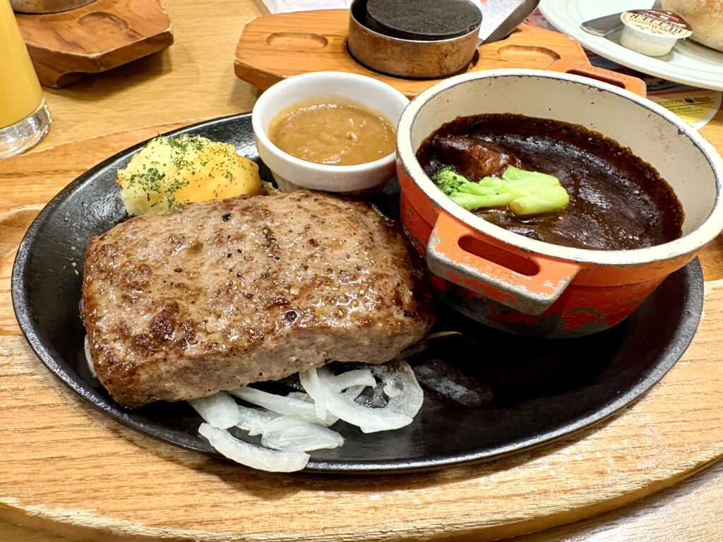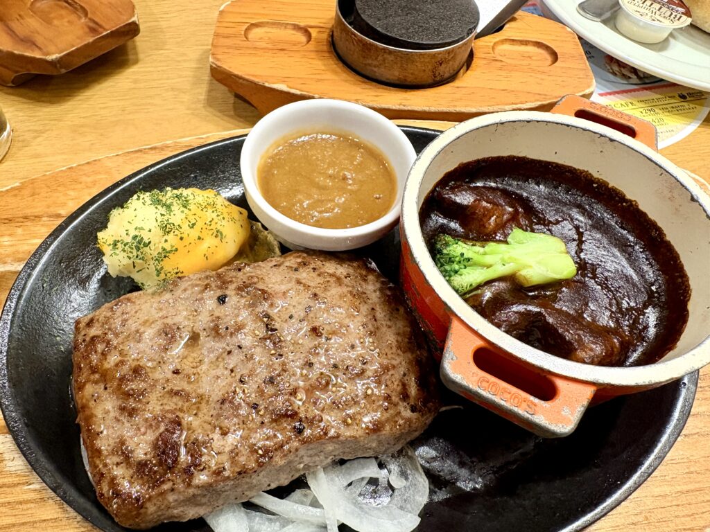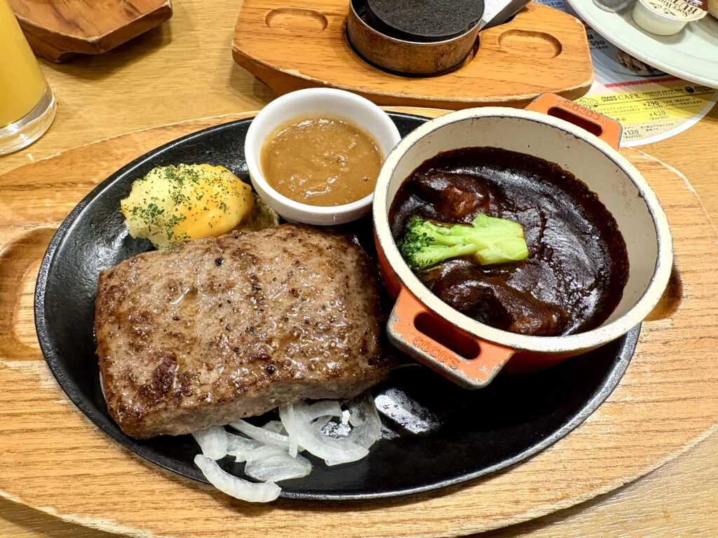 ココスの今月のグルメで、『ビーフハンバーグステーキ&ココスの濃厚ビーフシチュー』をいただきました。