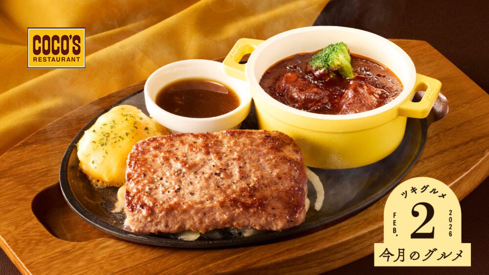 以上、ココス【選べる4つのソース!肉肉しく濃厚!!】2月のグルメ「ビーフハンバーグステーキ&ココスの濃厚ビーフシチュー」、という記事でした。