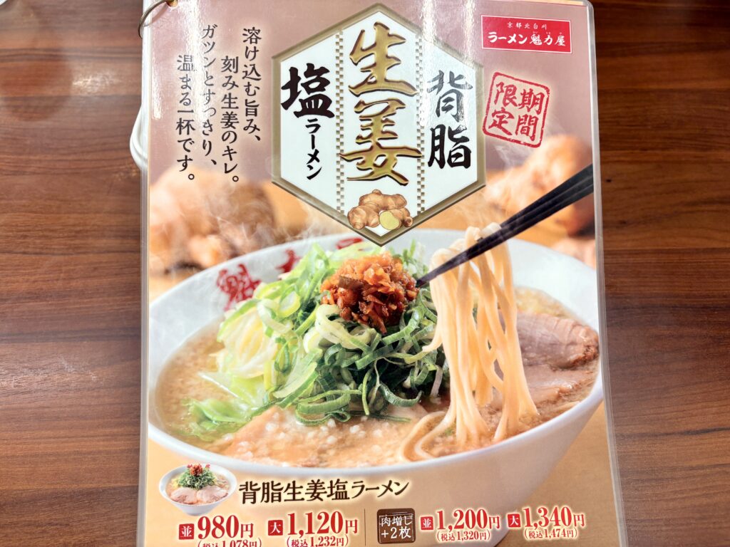 天気は良くても朝晩は冷えるので、ぜひ「背脂生姜塩ラーメン」で乗り切りましょう!