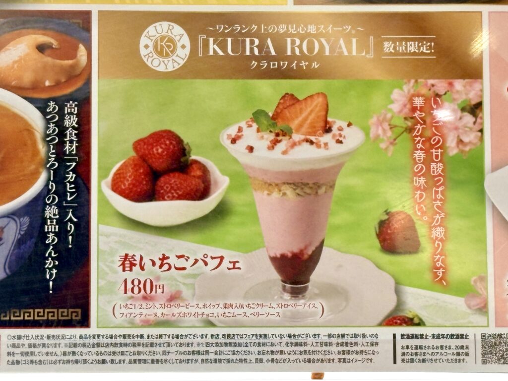 くら寿司【数量限定】「春いちごパフェ」クラロワイヤル、ワンランク上のスイーツがおいしかった!