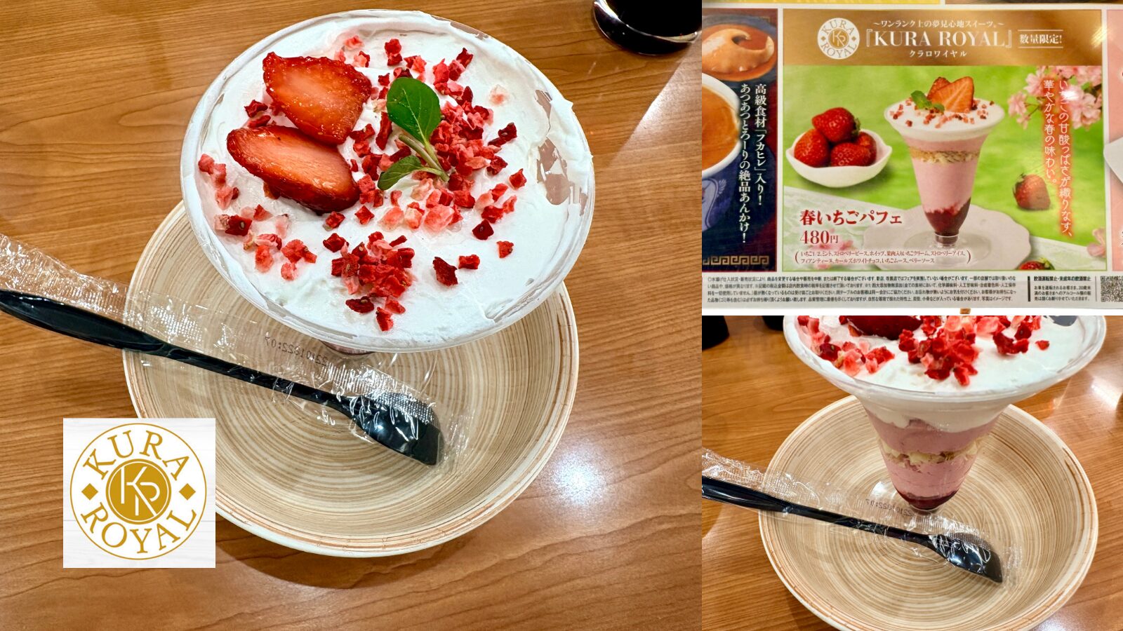 くら寿司でクラロワイヤルシーズから数量限定「春いちごパフェ」をいただきました。