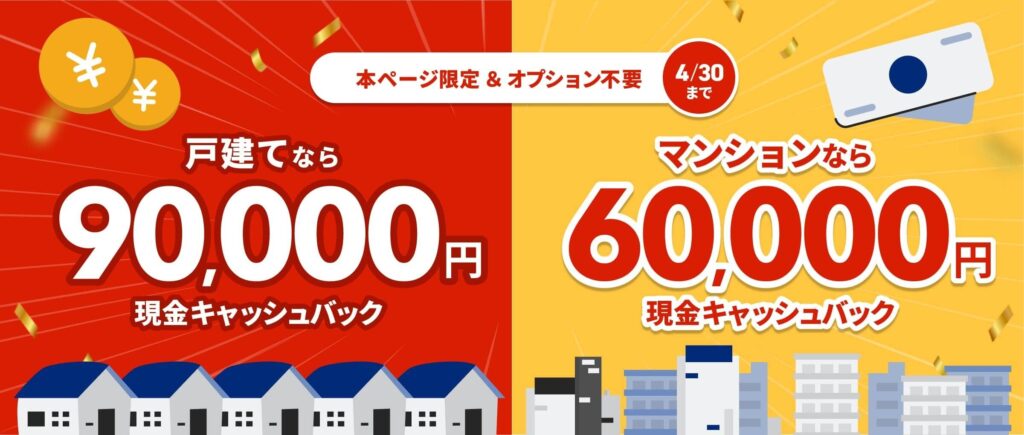 ・戸建て:90,000円キャッシュバック(オプション不要)