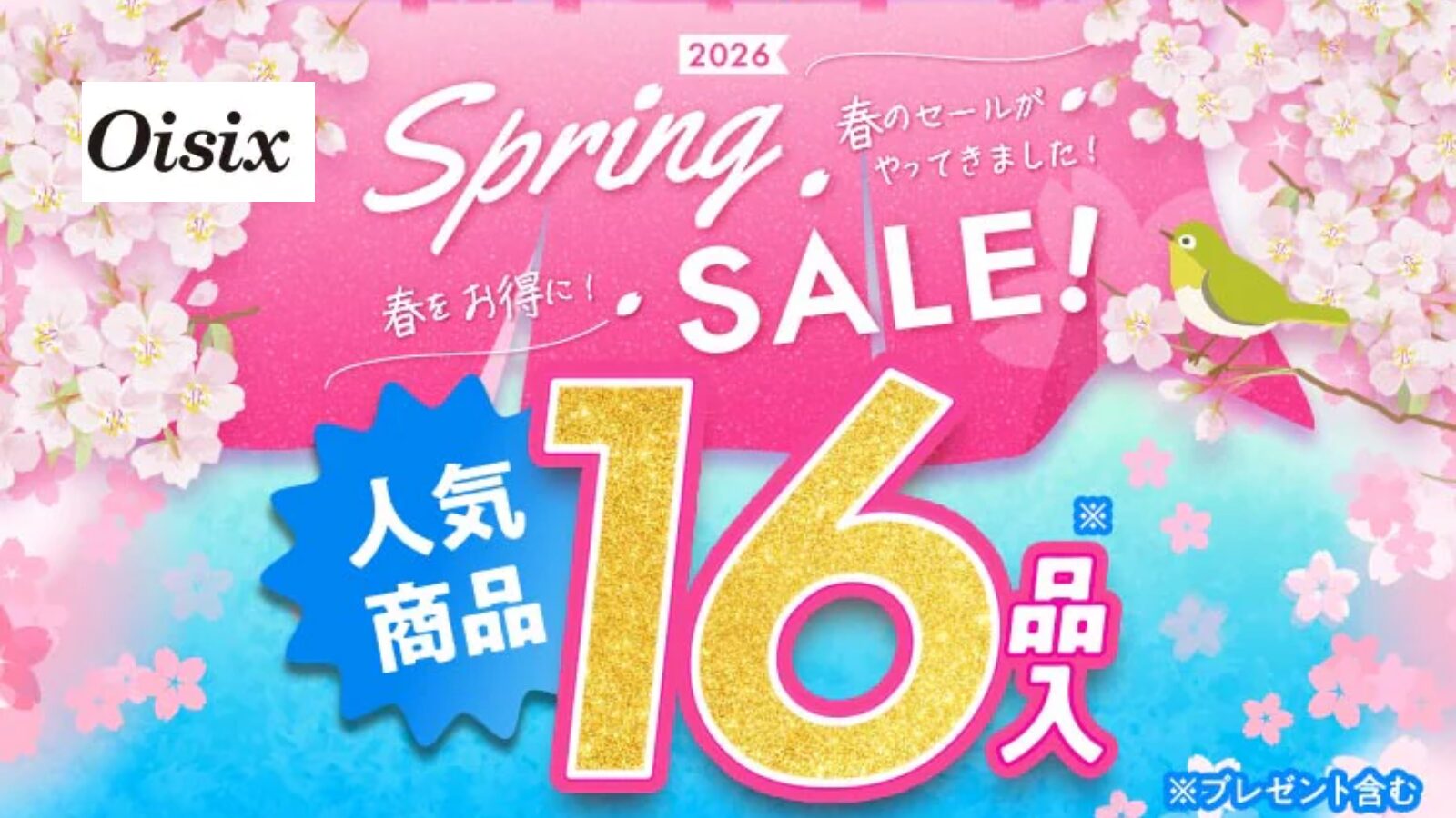 2026スプリングセールおためしセットとは、Oisixで人気の高い商品16品目を、初めての方限定、送料無料、1,980円(税込)でお試しできる大変お得なセットです。