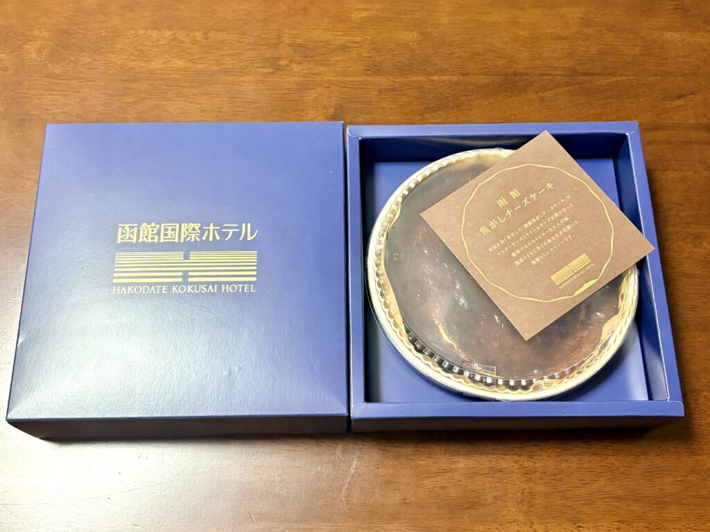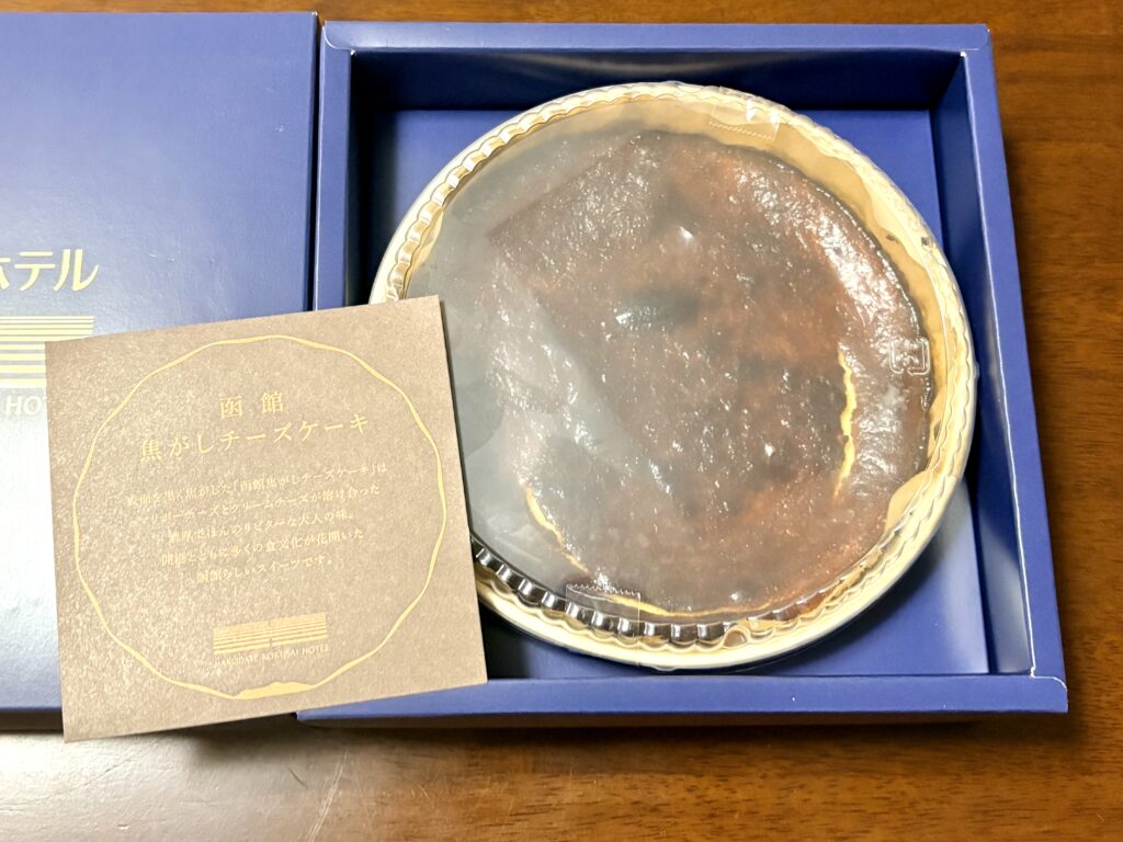 先日「北海道まるごとフェアinサンシャインシティ2025」に行き、おみやげに函館国際ホテル『函館焦がしチーズケーキ』を購入しました。