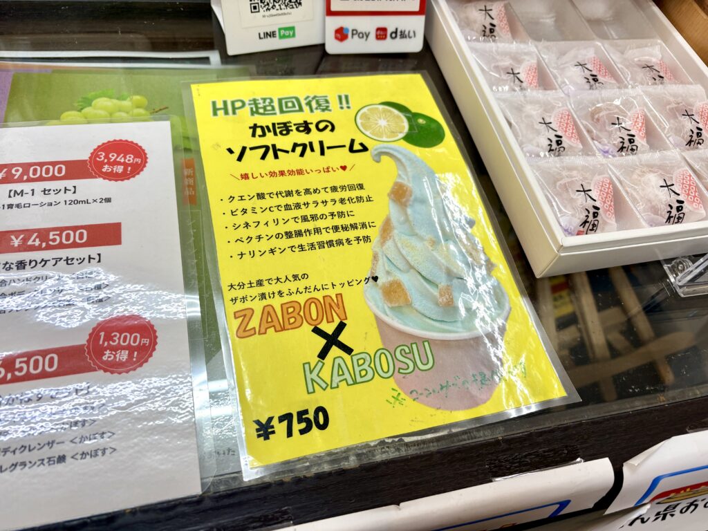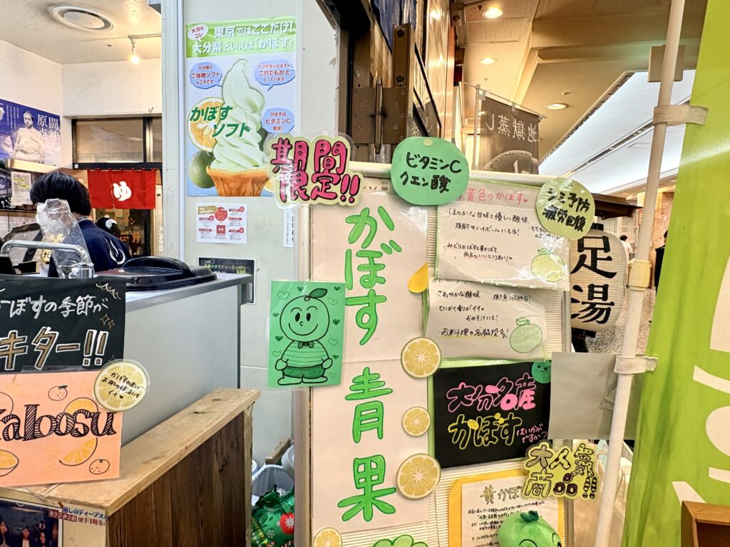 都内ではココしか食べることができない、大分のかぼすがこれでもかと入った「かぼすソフトクリーム」をぜひ!