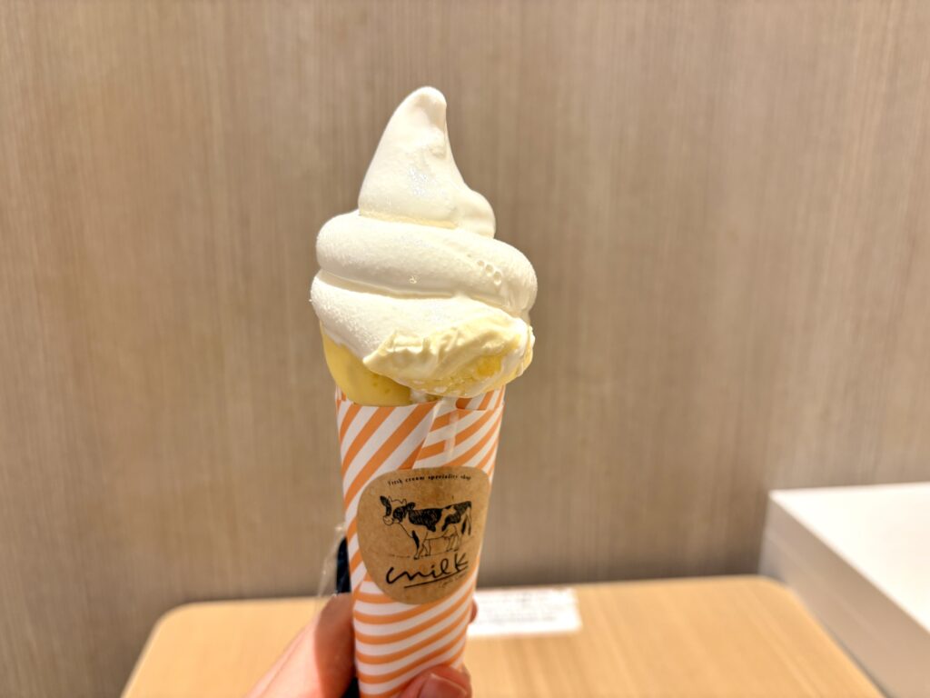 押上スカイツリー内にある「発酵バター専門店 HANERU & 生クリーム専門店 milk」でソフトクリームをいただきました。