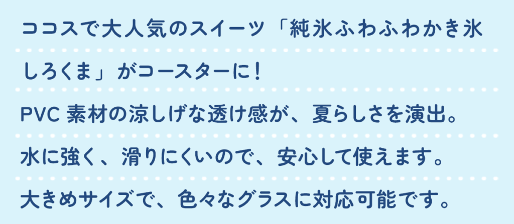 暑い夏でもココロはずむアイテムを詰め込んだ「ココス夏の福袋2025」が今年も登場!暑い夏をより一層お楽しみいただけるココロはずむアイテム「メッシュバッグ、ステンレスタンブラー、かき氷巾着、かき氷Loverコースター、ココス ステッカー、オリ...