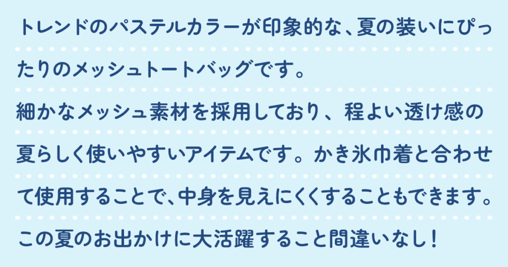 ①メッシュトートバッグ