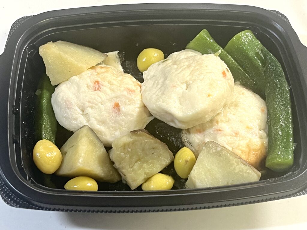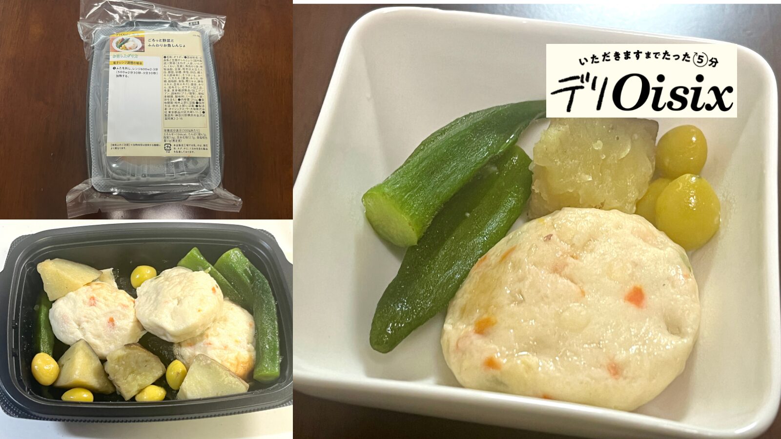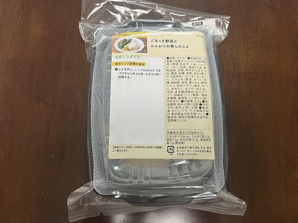 レンジで温めるだけで完成する「デリOisix」から、『ごろっと野菜とふんわりお魚しんじょ』をいただきました。