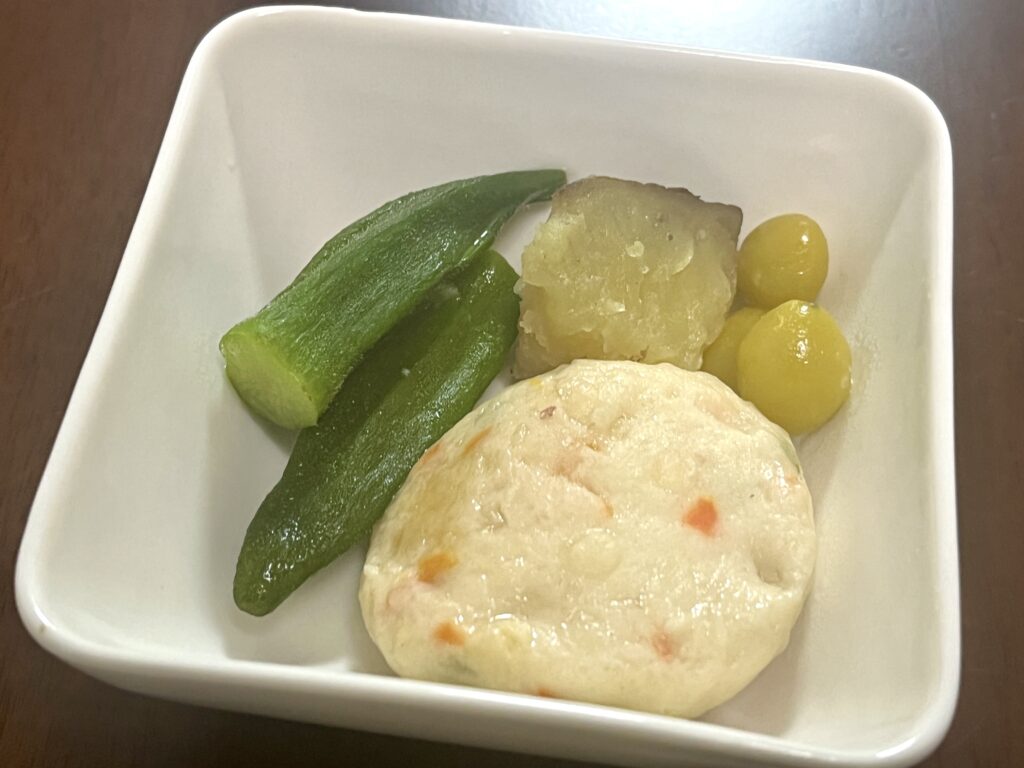 ふんわりしたお魚しんじょは子どもにも人気でした!野菜もひと口大にカットされているので食べやすいです。